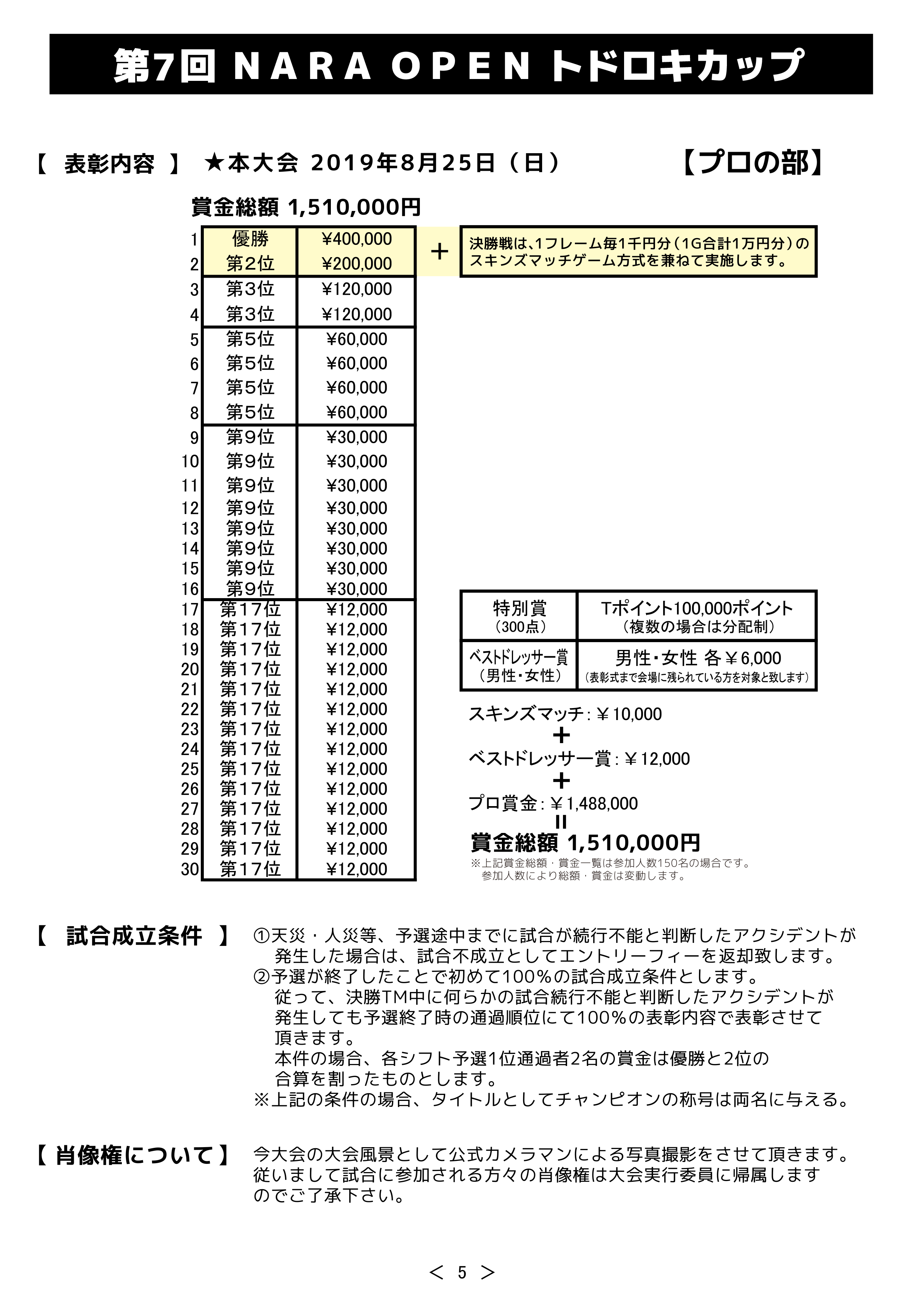 ※NARA OPENなげほ プロ1,000円 アマ2,000円