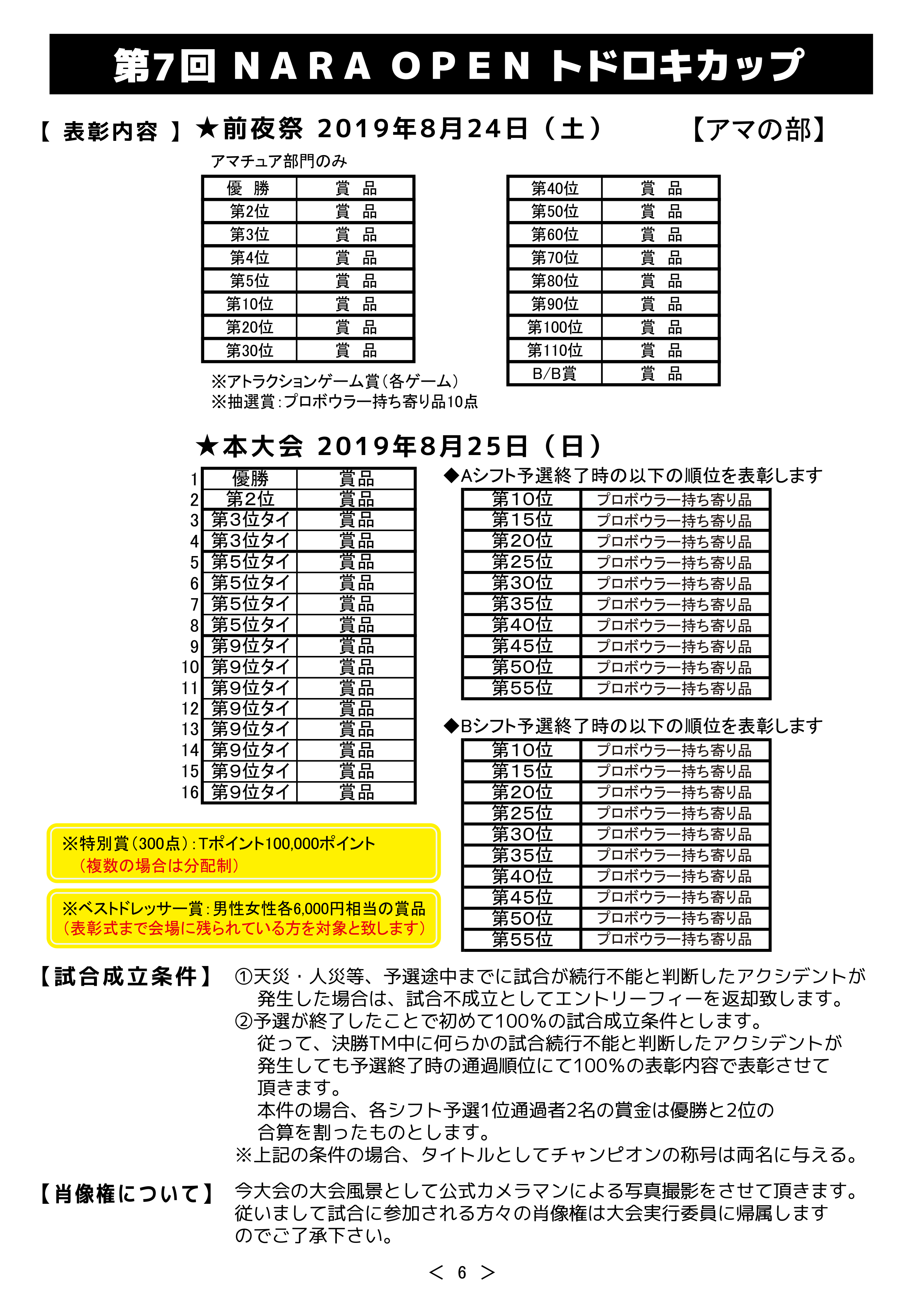 アマチュア選手のみ表彰制度。アトラクションゲーム付き。