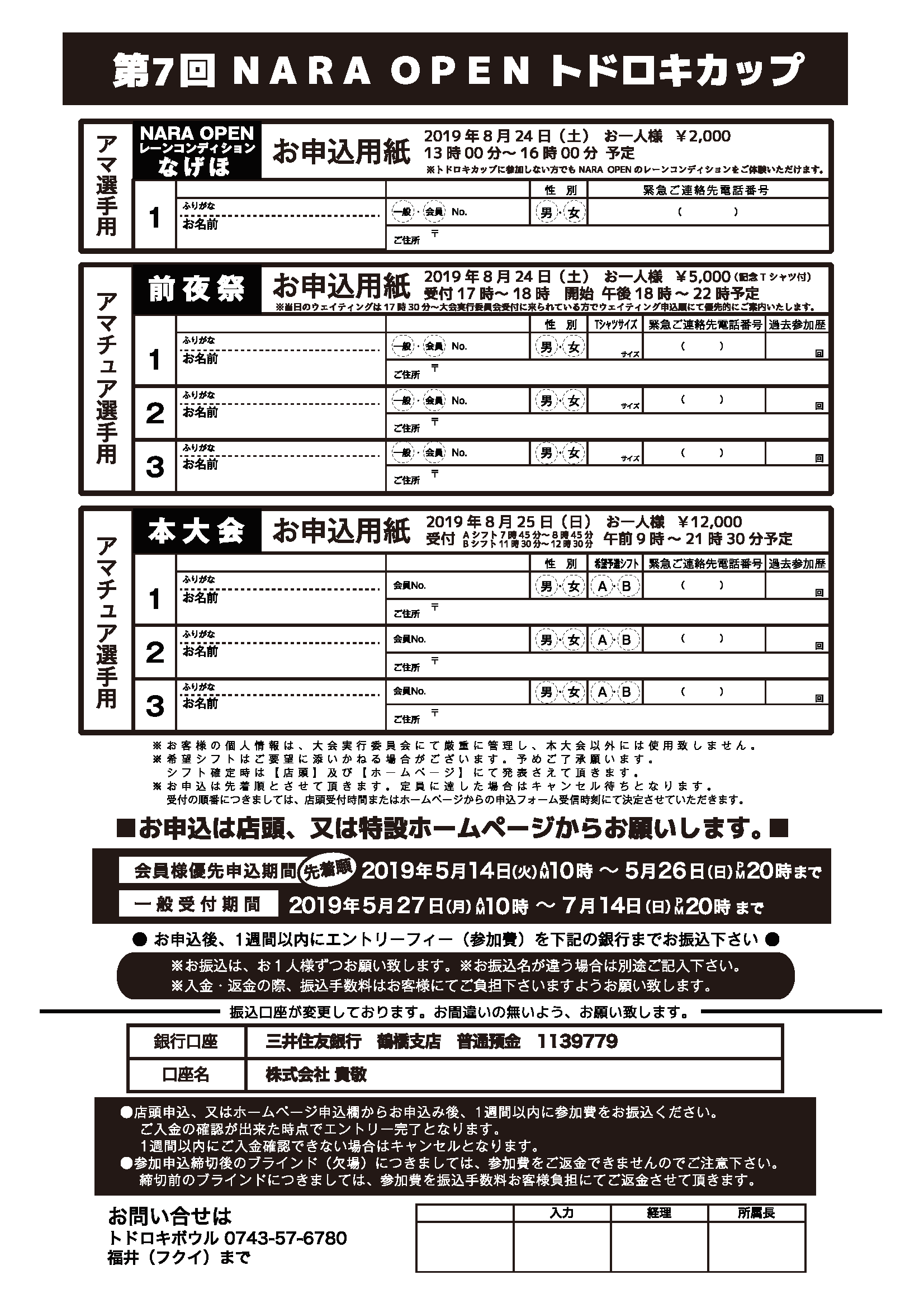 ※前回大会とは振込口座が変更しております。お間違いの無いよう、お願い致します。
